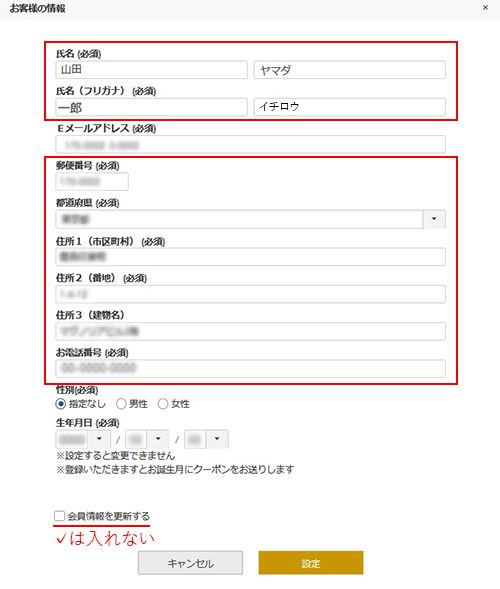 ※「会員情報を更新する」にチェックを入れなければ、今回のみの変更となります