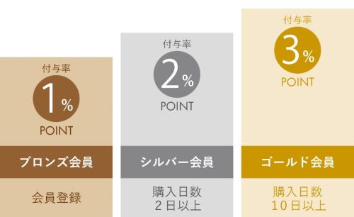 ・ゴールド会員(条件:ご購入日数10日以上、ポイント付与率3倍)